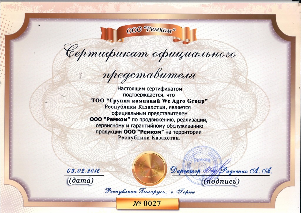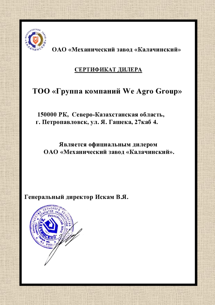 Товарищество с ограниченной ответственностью «Группа компаний We Agro Group» является официальным дилером по Северо-Казахстанской области известных производителей сельскохозяйственной и специальной техники производства России, Белоруссии и Польши: ОАО «Светлоградагромаш», ООО «Агротехника-Юг», ООО Машиностроительный завод «Тонар», ООО «Ремком», ТОО «Metal-Fach», POTTINGER, POETTINGER Landtechnik GmbH, Австрия и многих других.