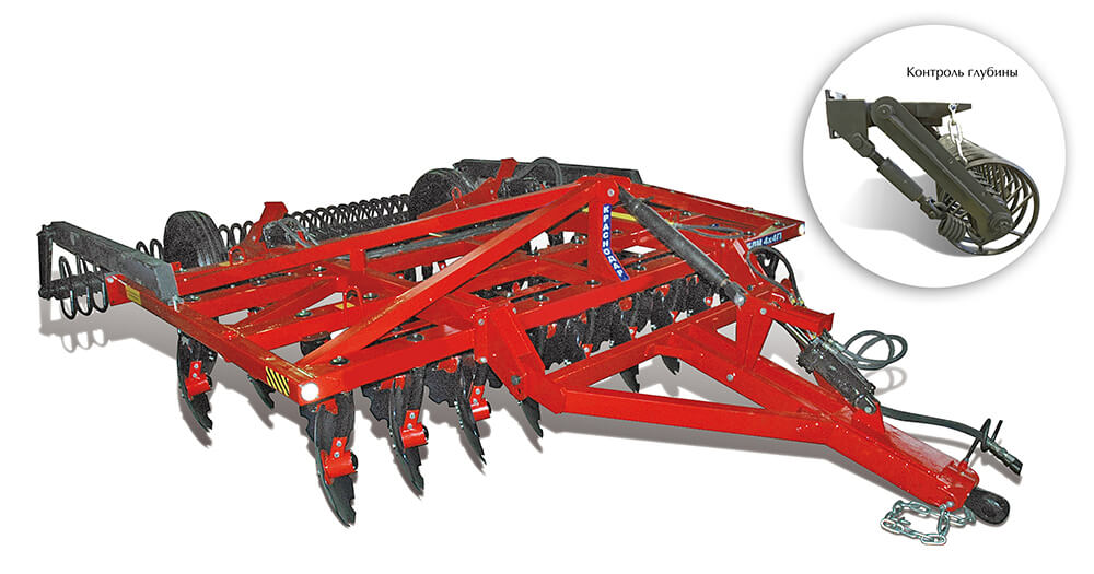 Назначение: для поверхностной обработки почвы на глубину 12-17 см, уничтожения сорняков, измельчения пожнивных остатков. Рабочая скорость трактора 10-12 км в час. Используются диски «Bellota» Испания, сталь 49-51 HRS, толщина 6 мм. Комплектуются со шлейф катками.