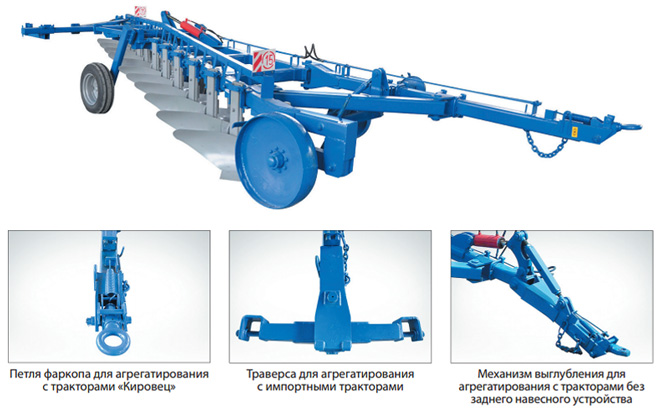 Агрегатируются с тракторами тягового класса 6-8 т.