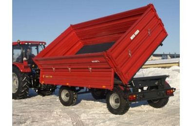 Двухосевый прицеп T710/1 ёмкостью 6 т обладает лёгкой и солидной конструкцией, основанной, главным образом, на замкнутых профилях. Нижняя и верхняя рама изготовленные из стали S355 ( 18G2A), что гарантирует стойкость на протяжении долгих лет потребления. Характеризуется низким уровнем пола по отношению к грунту, что облегчает загрузку. Стены ящика сделано из бортовых профилей известной марки Fuhrmann. Обеспечивают они совершенную жесткость и непроницаемость конструкции. Ящик основан на системе шарниров, делающей возможным её трёхсторонний свал. Дополнительно в задней стене, стандартно находится заслонка с желобом, предназначена для разгрузки сыпучих материалов. Стандартно к каждому прицепу добавлены наездные клины для колёс. По специальному пожеланию клиента можно снабдить прицеп запасным колесом, с крепежом под нижней рамой, заднюю сцепку, а также стеллажом вместе с брезентовой покрышкой. Прицеп может быть также платформой, после разборки стен и столбиков. Превосходно годится к транспортировке небольшого количества рулонов соломы, ящиков или поддонов. Пол T710/1 изготовленный из обычной стали S255 толщиной 4 мм, покрытый высокого качества лаковым покрытием, которое защищает от деформаций и коррозии. Прицеп изготовлен согласно с директивами ЕС и обладает сертификатом ЕС. Стандартно оснащен однопроводным пневматическим тормозом.