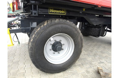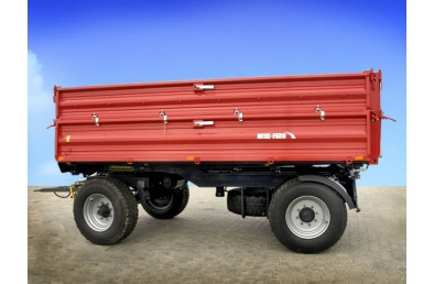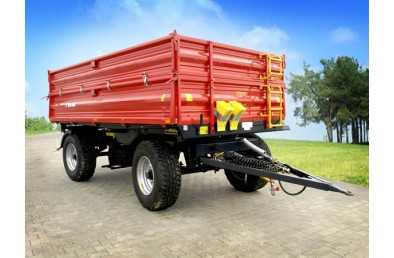 Двухосевый прицеп T 711 ёмкостью 8 т обладает лёгкой и солидной конструкцией, основанной, главным образом, на замкнутых профилях. Нижняя и верхняя рама изготовленные из стали S355 ( 18G2A), что гарантирует стойкость на протяжении долгих лет потребления. Характеризуется низким уровнем пола по отношению к грунту, что облегчает загрузку. Стены ящика сделано из бортовых профилей известной марки Fuhrmann. Обеспечивают они совершенную жесткость и непроницаемость конструкции. Ящик основан на системе шарниров, позволяющей на её трёхсторонний свал. Дополнительно в задней стене, стандартно находится заслонка с желобом, предназначена для разгрузки сыпучих материалов. Стандартно к каждому прицепу добавлены наездные клины для колёс. По специальному пожеланию клиента можно снабдить прицеп запасным колесом, с крепежом под нижней рамой, заднюю сцепку, а также стеллажом вместе с брезентовой покрышкой. Прицеп может быть также платформой, после разборки стен и столбиков. Превосходно годится к транспортировке небольшого количества рулонов соломы, ящиков или поддонов. Пол T 711 изготовленный из обычной стали S255 толщиной 4 мм, покрытый высокого качества лаковым покрытием, которое защищает от деформаций и коррозии. Прицеп изготовлен согласно с директивами ЕС и обладает сертификатом ЕС. Стандартно оснащен однопроводным пневматическим тормозом. С целью облегчения ежедневного употребления прицеп обладает системой центральной блокировки стен у края пола. Стандартное оснащение лестницей облегчает ежедневное использование машины. С целью сохранения жесткой конструкции после загрузки применено трос, стабилизирующий стены, которые опускается тягачом на боковой стене. Для защиты оператора перед падением ящика во время сервиса прицепы применено механическую защиту в виде подпоры загрузочного ящика.
